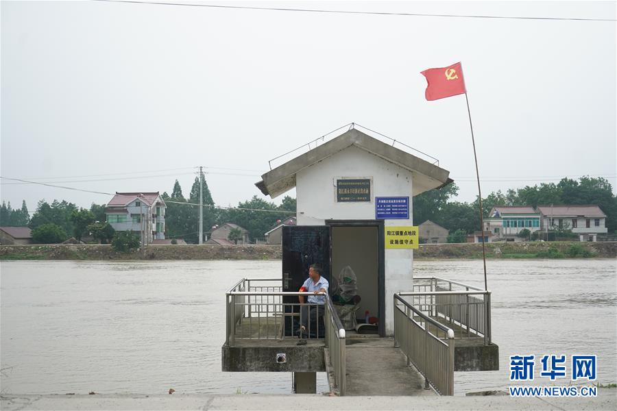 7月9日,在高淳區(qū)陽江鎮(zhèn)永豐圩,巡堤員在值守點值守。新華社記者季春鵬攝