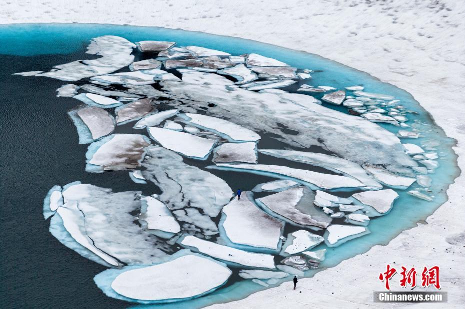 當(dāng)?shù)貢r(shí)間2020年7月7日,俄羅斯堪察加半島,Gorely火山附近的Sredinnoye火山湖。這個(gè)湖斷斷續(xù)續(xù)的,是6月底到8月初融雪形成的。圖片來源:視覺中國(guó)