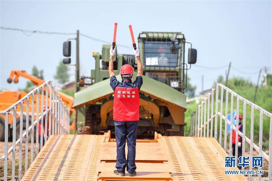 7月10日,工作人員引導(dǎo)多功能應(yīng)急搶險(xiǎn)車安全過橋。當(dāng)日,由吉林省交通運(yùn)輸廳主辦的公路橋梁水毀搶通應(yīng)急演練在長春市雙陽區(qū)雙陽河舉行,參與演練人員從汛情水毀信息報(bào)送、應(yīng)急裝備快速集結(jié)、機(jī)械化橋梁搶通搭設(shè)、善后處理等方面進(jìn)行實(shí)戰(zhàn)演練。新華社記者張楠攝