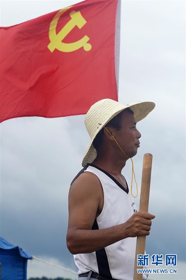 7月9日,邵忠如在圩堤上觀察水情。新華社記者萬(wàn)象攝