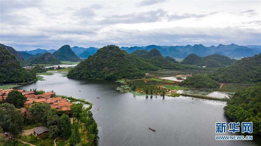 這是7月9日拍攝的普者黑國家濕地公園一景(無人機(jī)照片)。新華社記者 胡超 攝
