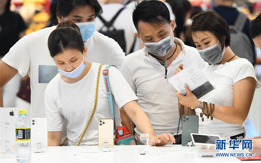 7月12日,游客在??谌赵聫V場免稅店選購電子產(chǎn)品。