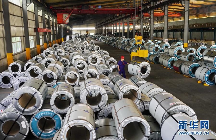 7月13日,河北省遷安市一家鋼鐵外貿(mào)企業(yè)的工人在生產(chǎn)車間內(nèi)吊裝彩涂板。近期,河北省遷安市的紡織、鋼鐵、建材等二十余家外貿(mào)企業(yè)加緊生產(chǎn)趕制訂單,滿足市場需求。同時,當(dāng)?shù)卣ㄟ^落實(shí)各項惠企政策,加大對外貿(mào)企業(yè)的幫扶支持力度,助力經(jīng)濟(jì)平穩(wěn)發(fā)展。新華社記者 牟宇 攝