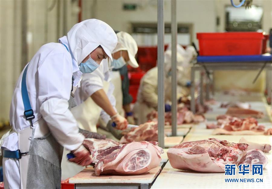 7月15日,北京二商肉類食品集團(tuán)有限公司員工在肉類分割流水線上工作。北京二商肉類食品集團(tuán)有限公司是保障北京肉類市場(chǎng)供應(yīng)的主要企業(yè)之一。新冠肺炎疫情以來(lái),企業(yè)嚴(yán)格實(shí)施北京市、農(nóng)業(yè)農(nóng)村部和中國(guó)肉類協(xié)會(huì)的防疫要求,對(duì)進(jìn)入廠區(qū)的人員、車輛以及原料采購(gòu)、屠宰分割、產(chǎn)品加工、貯藏運(yùn)輸、廢棄物收集及污水處理等生產(chǎn)環(huán)節(jié)嚴(yán)格防疫,強(qiáng)調(diào)源頭把關(guān)徹底消毒。目前,集團(tuán)公司下屬多家生豬屠宰加工基地正常運(yùn)營(yíng),保質(zhì)保量供應(yīng)北京市場(chǎng)需求。新華社記者 李欣 攝