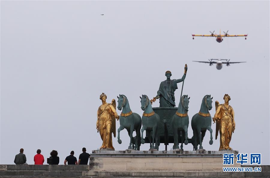 7月14日,飛機參加在法國巴黎舉行的國慶閱兵式。新華社記者高靜攝
