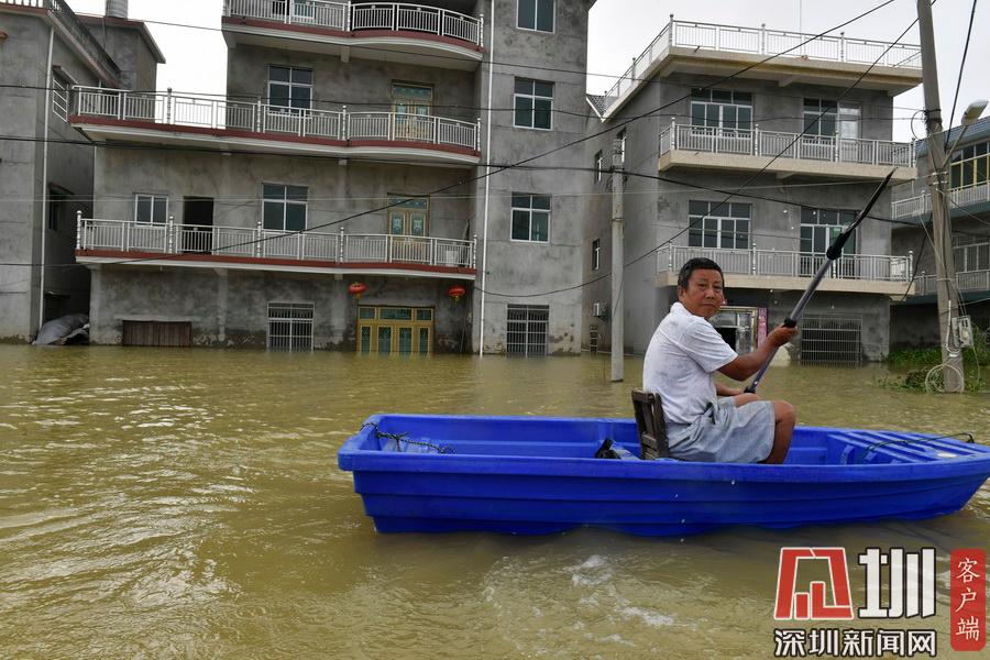 2020年7月15日,江西省鄱陽縣油墩街鎮(zhèn)同興村,村莊受到洪水圍困,大部分村民已經(jīng)被轉(zhuǎn)移出去,仍有少數(shù)村民選擇留守家中積極自救繼續(xù)生活。7月8日晚,鄱陽縣油墩街鎮(zhèn)西江因特大暴雨出現(xiàn)漫堤決口,5個行政村被洪水圍困,數(shù)萬名群眾被及時(shí)疏散轉(zhuǎn)移。同興村村民張瑤康回憶起了當(dāng)時(shí)的場景,“水一下子就涌進(jìn)來,等緩過神來趕緊向二樓轉(zhuǎn)移一樓的物品。洪水來時(shí)只從一樓搶到了一些輕便易拿的東西,冰箱、洗衣機(jī)之類的大物件,至今仍浸泡在一樓水中?!?5日,記者跟隨張瑤康乘船回家,抵達(dá)后看到,一樓淹沒在水中,一個綁在二樓護(hù)欄的木梯成為進(jìn)出“家門”的唯一通道?!懊刻靹澊ゴ謇镞\(yùn)送水和食物,家里有煤氣罐和灶臺。因?yàn)?0多歲的老母親行動不便,我們選擇留守家中?!薄半m然對岸就有安置點(diǎn),但還是更愿待在自己家里,一來是不愿意給政府添麻煩,二來能每天看著自己的房子心里踏實(shí)?!蓖d村村民張長來夫婦帶著剛剛領(lǐng)到的大米、方便面、飲用水乘船回到家中。記者在現(xiàn)場看到,隨著各方救援力量和物資的匯聚,被洪水圍困的村民生活雖有不便,但生活仍在繼續(xù)?!胺孔硬坏梗揖驮?,我們要積極面對,早日重建家園。”張瑤康告訴記者。