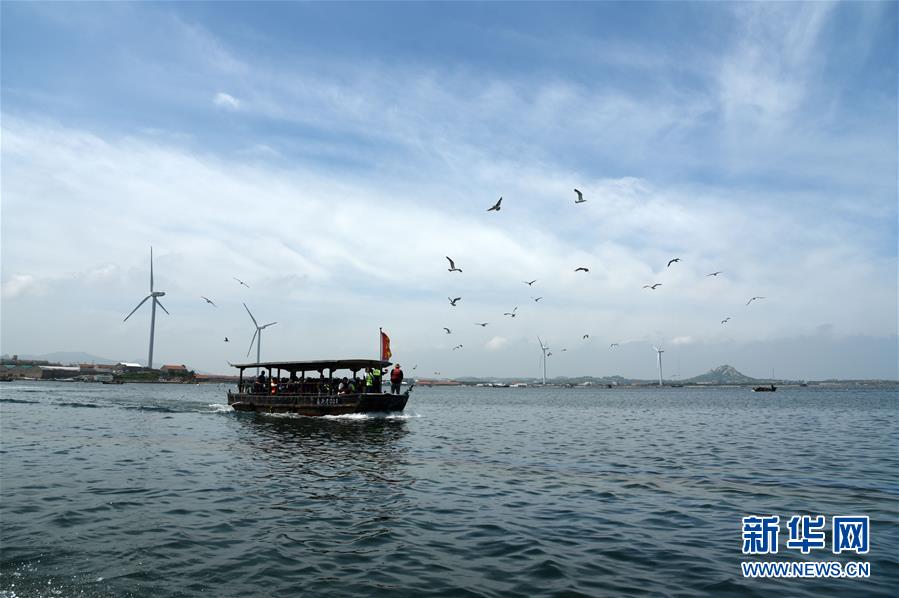 7月17日,游客乘坐觀光船參觀榮成桑溝灣泓泰國家級(jí)海洋牧場(chǎng)。近年來,山東省榮成市重點(diǎn)發(fā)展特色海洋旅游產(chǎn)業(yè),打造眾多國家級(jí)海洋牧場(chǎng),保留修復(fù)傳統(tǒng)海草民居,吸引游客前來觀光體驗(yàn)。如今特色海洋旅游已逐漸成為榮成經(jīng)濟(jì)發(fā)展新的增長點(diǎn)。新華社記者王凱攝