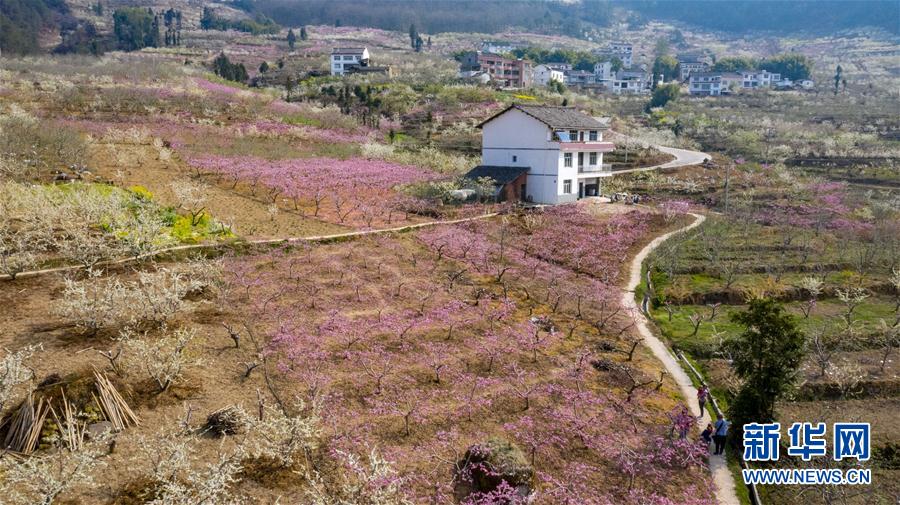 這是3月26日拍攝的四川省漢源縣雙溪鄉(xiāng)申溝村萬畝桃園一角(無人機照片)。新華社記者王曦攝