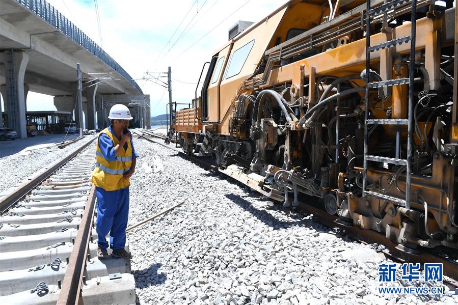7月20日,中鐵二十四局施工人員在平潭海峽公鐵大橋施工現(xiàn)場(chǎng)作業(yè)。當(dāng)日,中鐵二十四局施工人員在平潭海峽公鐵大橋進(jìn)行最后一根鐵路長(zhǎng)軌換鋪。至此,平潭海峽公鐵大橋雙線鐵路長(zhǎng)軌全部換鋪完成。新華社記者林善傳攝