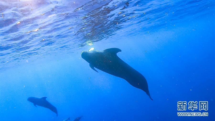 這是7月20日在南海某海域拍攝的短肢領航鯨。新華社記者張麗蕓攝