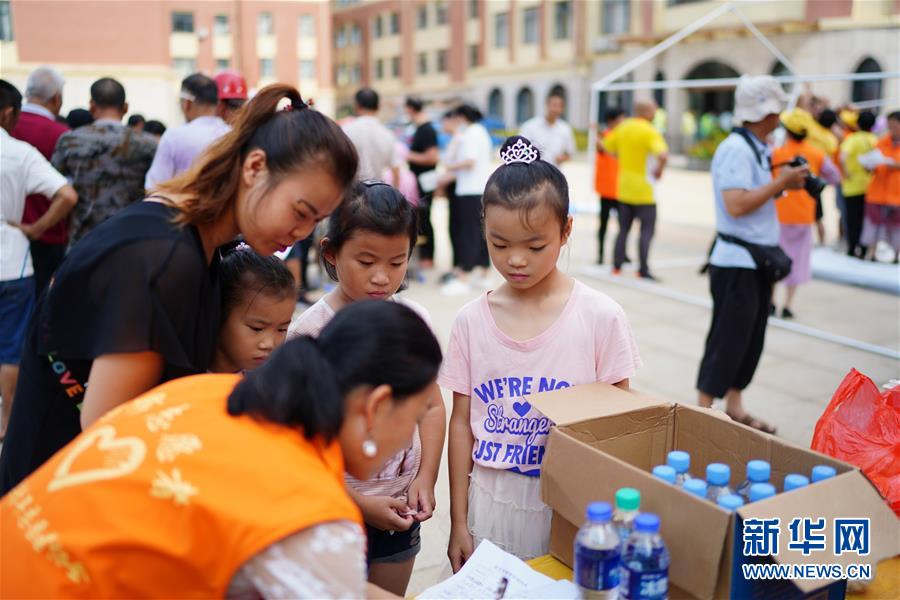 熱心市民來到江西永修縣湖東學(xué)校安置點(diǎn)捐贈(zèng)物資(7月13日攝)。新華社記者周密攝