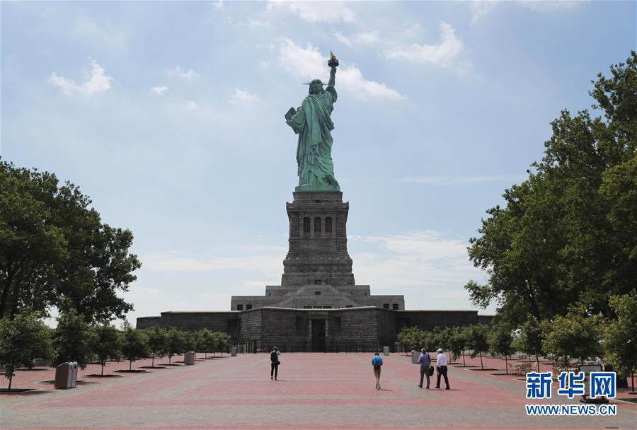7月20日,參觀者在美國紐約自由島游覽。美國紐約市20日繼續(xù)推進(jìn)經(jīng)濟(jì)重啟計(jì)劃,宣布開始進(jìn)入解封新階段,進(jìn)一步允許部分低風(fēng)險(xiǎn)文娛活動(dòng)重啟。自由女神像所在的自由島對(duì)公眾開放,但雕像內(nèi)部和博物館仍關(guān)閉。新華社記者王迎攝