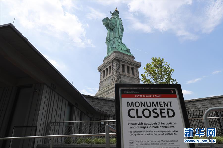 7月20日,美國紐約自由島上一處提示牌顯示自由女神像內(nèi)部的參觀仍處于暫停狀態(tài)。美國紐約市20日繼續(xù)推進經(jīng)濟重啟計劃,宣布開始進入解封新階段,進一步允許部分低風險文娛活動重啟。自由女神像所在的自由島對公眾開放,但雕像內(nèi)部和博物館仍關(guān)閉。新華社記者王迎攝