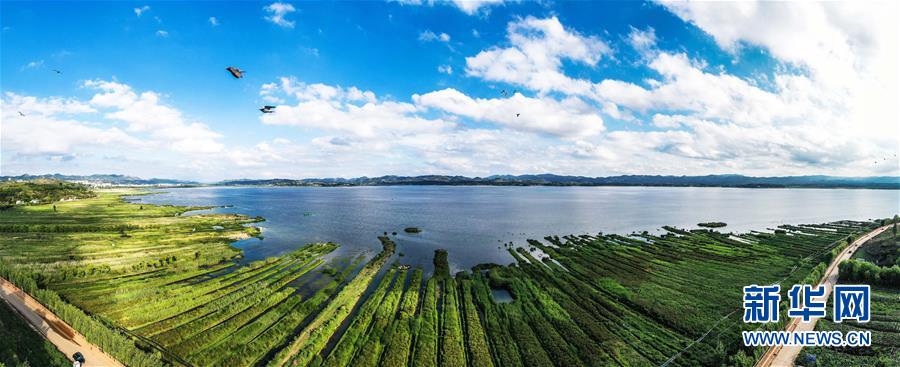 草海夏日風(fēng)光(6月10日攝無人機(jī)照片)。新華社記者楊文斌攝