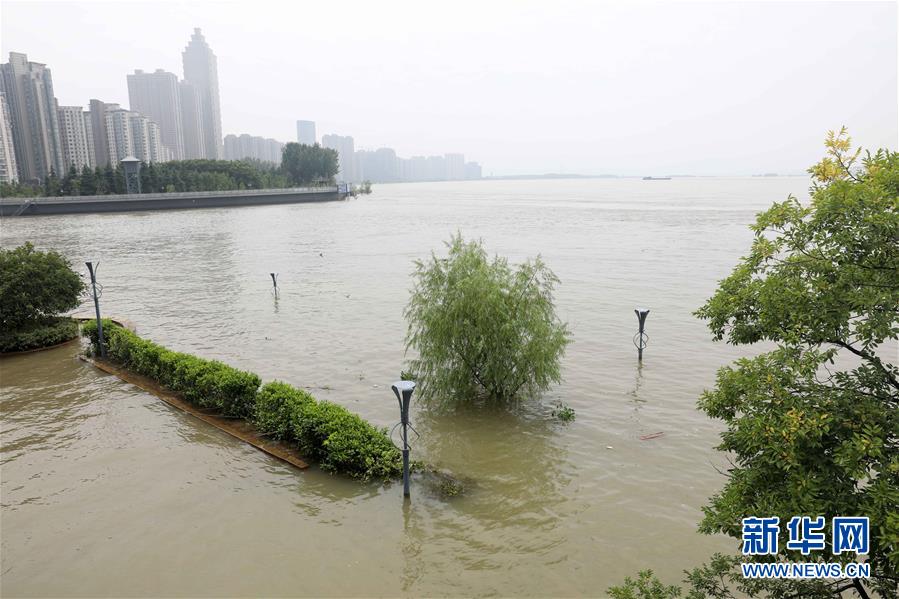 這是被江水淹沒的蕪湖市濱江公園一角(7月25日攝,無人機(jī)照片)。新華社記者 曹力 攝