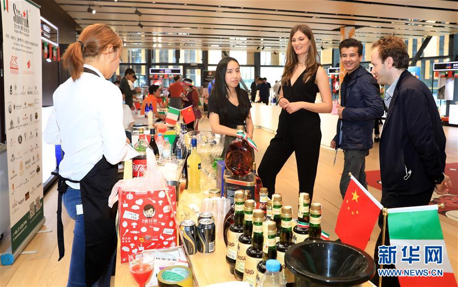 2020年5月8日,虹橋品匯國(guó)別文化節(jié)云游意大利主題展在上海虹橋進(jìn)口商品展示交易中心舉行,嘉賓在一家意大利酒類企業(yè)的展臺(tái)前駐足觀看。新華社記者 方喆 攝