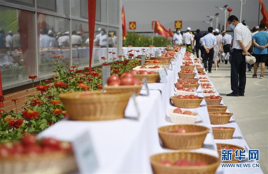 7月27日,參會者在展覽現(xiàn)場觀看由不同種子培育出的西紅柿產(chǎn)品。新華社記者 王鵬 攝