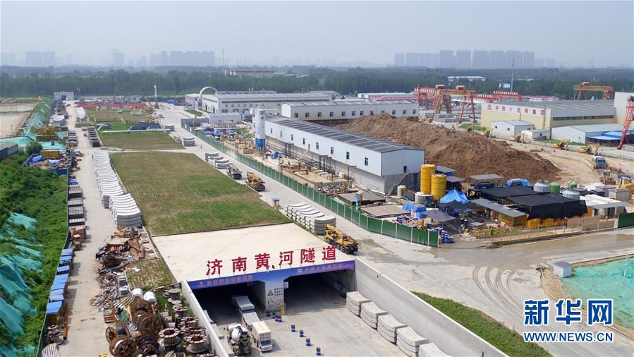 這是7月29日拍攝的“萬里黃河第一隧”——濟南黃河隧道工程施工工地(無人機照片)。新華社記者王凱攝