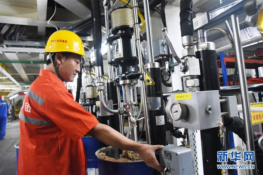 7月29日,“萬里黃河第一隧”——濟南黃河隧道工程施工人員在查看盾構(gòu)機工作情況。新華社記者王凱攝