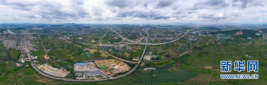 這是已經建設完成的潮汕環(huán)線高速公路上北互通立交(無人機照片,7月31日攝)。新華社記者劉大偉攝