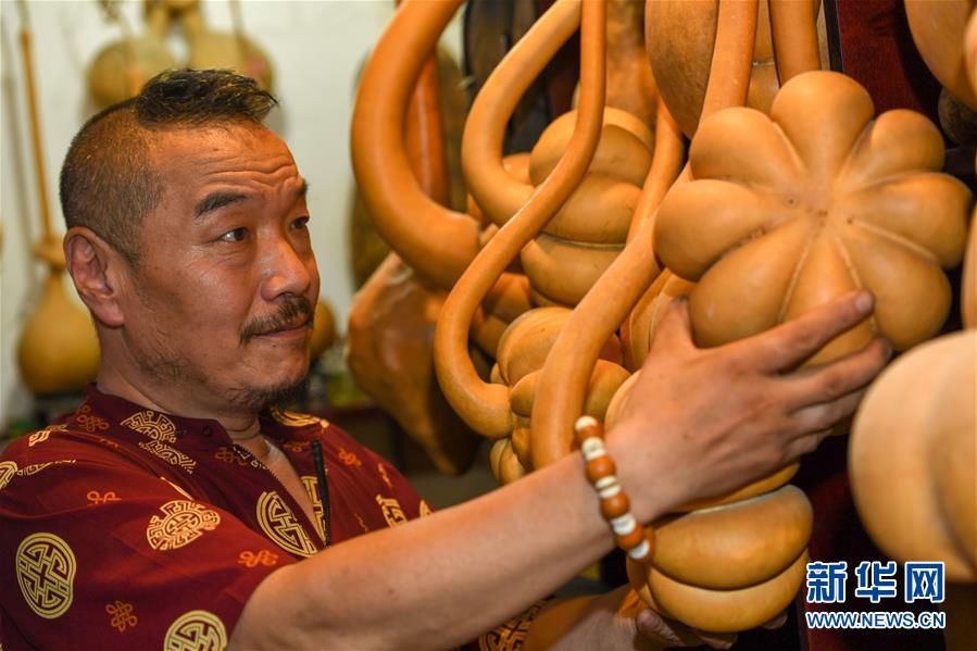 8月5日,侯景偉挑選適合創(chuàng)作的葫蘆。今年55歲的吉林四平人侯景偉自幼與家人學(xué)習(xí)雕刻、烙畫藝術(shù)。經(jīng)過多年潛心研究,他將浮雕和烙畫工藝相結(jié)合,通過拋光、起稿、雕刻、烙燙、套色等十余道工藝,制作展現(xiàn)傳統(tǒng)文化、民俗故事的葫蘆工藝品。2020年,侯景偉被評(píng)為四平市非物質(zhì)文化遺產(chǎn)項(xiàng)目侯氏葫蘆雕刻烙畫代表性傳承人。他說:“希望有更多人加入到非遺傳承隊(duì)伍中,讓小葫蘆‘講’出更多民俗故事。”新華社記者張楠攝