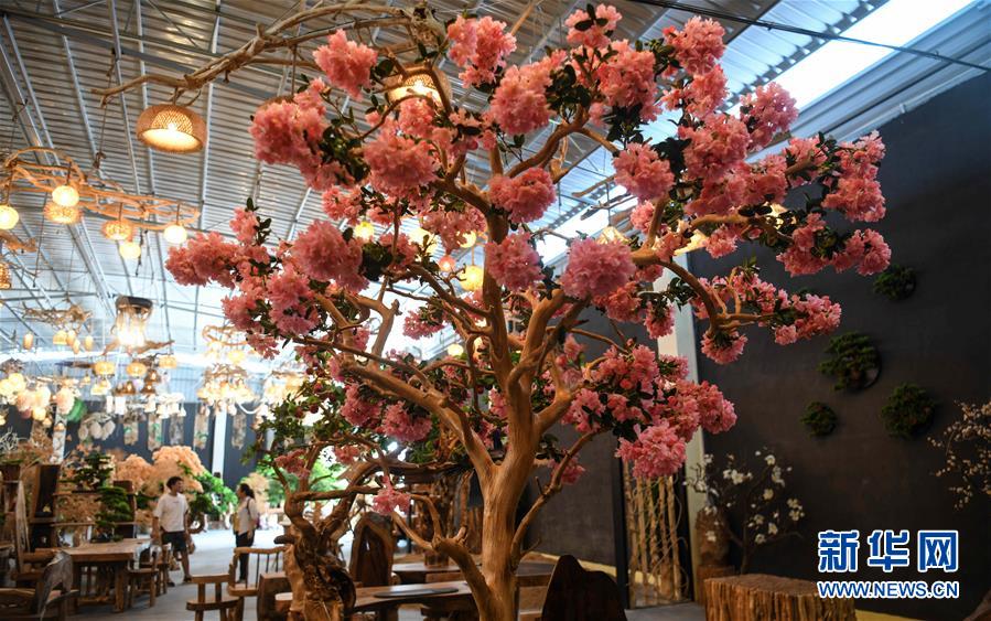 這是8月7日在永??h永安鄉(xiāng)根雕工藝品就業(yè)扶貧車間拍攝的根雕工藝品。2017年以來,廣西桂林市永??h永安鄉(xiāng)通過幫扶返鄉(xiāng)青年創(chuàng)業(yè)的方式,建立起根雕工藝品就業(yè)扶貧車間,組織貧困群眾進(jìn)車間務(wù)工學(xué)藝,把當(dāng)?shù)刎S富的朽木和柑橘樹根枝資源利用起來,加工成盆景、茶桌、吊燈等根雕工藝品,不僅幫助貧困群眾在家門口掌握一技之長,還讓他們?cè)诿撠氄焙髮?shí)現(xiàn)穩(wěn)定增收。新華社記者張愛林?jǐn)z