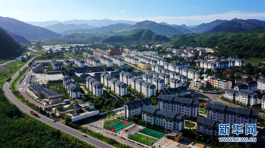 陜西洛南縣保安鎮(zhèn)倉圣社區(qū)移民搬遷集中安置點(diǎn)(7月27日攝,無人機(jī)照片)。