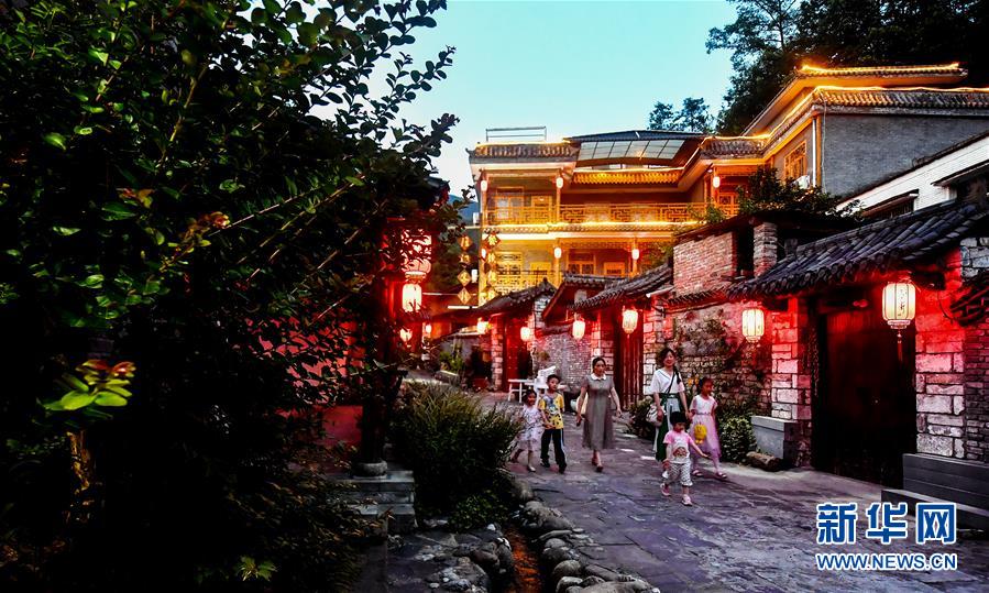 游客在陜西寶雞市太白縣咀頭鎮(zhèn)白云村的一家農(nóng)家樂里就餐(7月5日攝)。白云村是秦嶺深處的小山村,2016年建檔立卡貧困戶303人。近年來,為了徹底改變貧困面貌,白云村依靠當(dāng)?shù)匾郎桨牡赜騼?yōu)勢(shì),全面提升人居環(huán)境和村容村貌,發(fā)展鄉(xiāng)村旅游,讓群眾持續(xù)增收。目前,白云村已實(shí)現(xiàn)整體脫貧,2019年全村人均純收入12880元。新華社記者劉瀟攝。