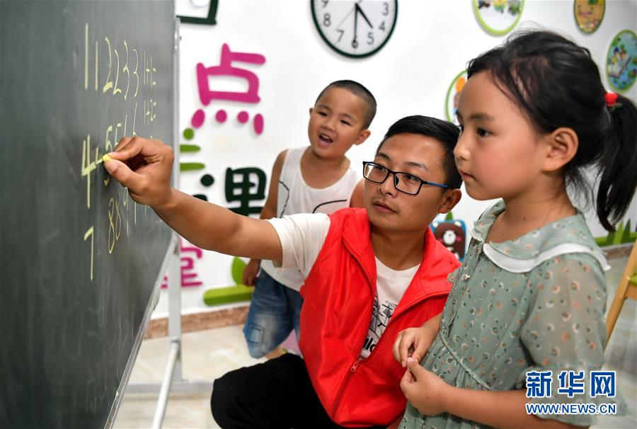 陜西安康市嵐皋縣城關(guān)鎮(zhèn)城北易地扶貧搬遷安置小區(qū)“四點(diǎn)半課堂”的老師在輔導(dǎo)孩子們學(xué)習(xí)數(shù)字(7月29日攝)。地處秦巴山區(qū)的嵐皋縣山多溝深,群眾居住分散,長(zhǎng)期以來易地搬遷成為這里脫貧攻堅(jiān)的重點(diǎn)。為避免易地搬遷群眾就業(yè)不充分、辦事不方便、管理不到位等問題,嵐皋縣依托市場(chǎng)完善社區(qū)生活、醫(yī)療、教育、娛樂等服務(wù)設(shè)施,并開展技能培訓(xùn)、開辦社區(qū)工廠,讓搬遷居民“穩(wěn)得住”“能致富”。新華社記者劉瀟攝。