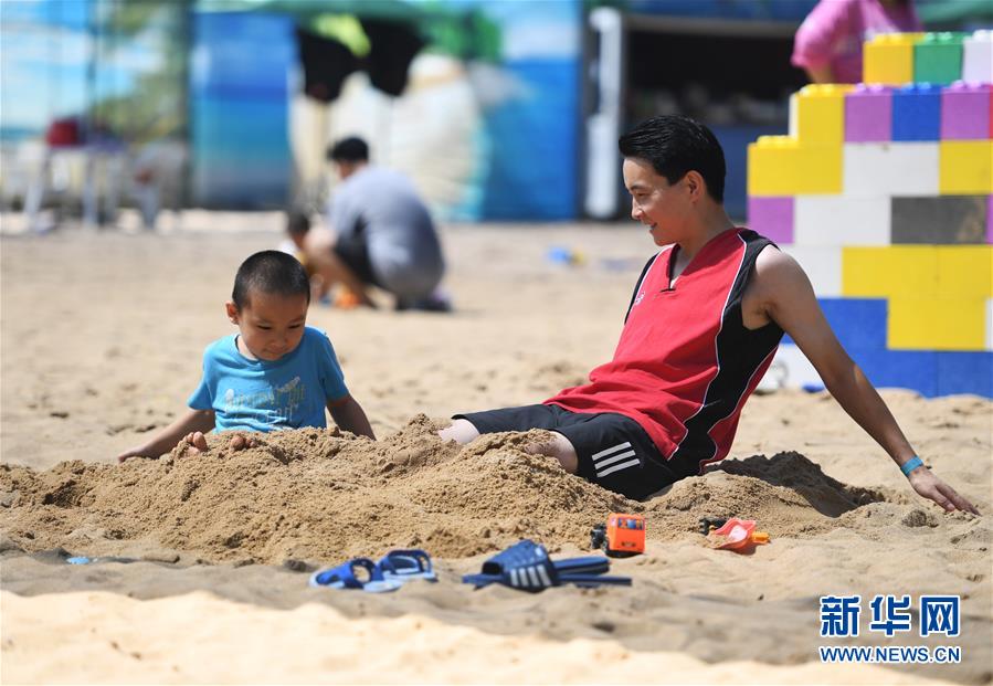 8月9日,市民在南宮五洲植物樂園戶外戲水區(qū)旁的沙灘上玩沙子。近期,在做好新冠肺炎疫情防控的前提下,位于北京市豐臺(tái)區(qū)的南宮五洲植物樂園戶外戲水區(qū)對外開放。市民在戲水的同時(shí)還可以在沙灘上畫沙畫、在新游樂項(xiàng)目“叢林網(wǎng)繩”里穿梭跳躍,豐富暑期生活。新華社記者任超攝。