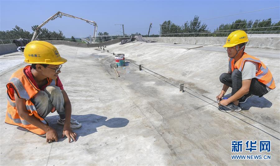 8月10日,工人在京雄城際鐵路霸州北站建設(shè)工地為雨棚梁底抹膩子。京雄城際鐵路霸州北站站臺雨棚混凝土結(jié)構(gòu)施工日前全部完成,目前霸州北站已全面轉(zhuǎn)入裝飾裝修和機電安裝階段,預(yù)計2020年底投入使用。京雄城際鐵路是連接北京市區(qū)、大興機場和雄安新區(qū)的重要干線。建成后,將進一步完善京津冀區(qū)域高速鐵路網(wǎng)結(jié)構(gòu),便利沿線群眾出行,對于推動京津冀協(xié)同發(fā)展和支撐建設(shè)雄安新區(qū)具有重要意義。新華社記者李曉果攝。