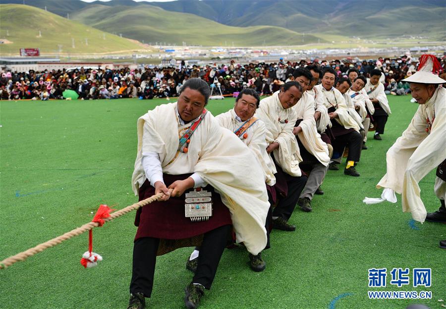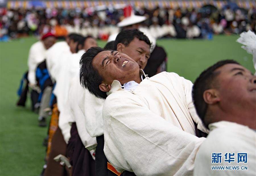 8月10日,當雄縣牧民在拔河比賽中。新華社記者普布扎西攝。