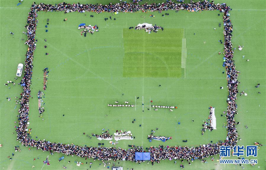 這是8月10日拍攝的拔河比賽現場(無人機照片)。