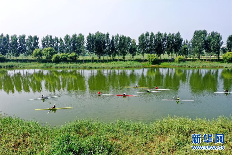 8月11日,廊坊市體育運動學校皮劃艇訓練隊在龍河進行訓練(無人機照片)。近年來,河北省廊坊市安次區(qū)統(tǒng)籌推進污水處理、飲水安全、景觀提升等水環(huán)境綜合治理工程,積極進行全域水生態(tài)建設,打造“水清、河暢、景美”的美麗水環(huán)境,為市民建設生態(tài)美好家園。新華社記者王曉攝