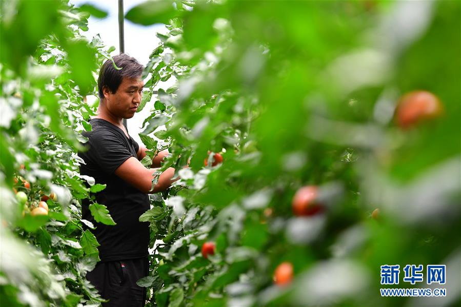 8月11日,在甘肅省臨夏回族自治州臨夏縣先鋒鄉(xiāng)前韓村,搬遷戶蔣元財在日光溫室內(nèi)采摘西紅柿。近年來,甘肅省臨夏回族自治州臨夏縣把易地扶貧搬遷作為打贏脫貧攻堅戰(zhàn)的重要任務(wù),科學(xué)推進(jìn)易地扶貧搬遷和脫貧攻堅工作。為了讓搬遷群眾能夠安居樂業(yè),當(dāng)?shù)卣⒅胤龀趾罄m(xù)產(chǎn)業(yè)發(fā)展,引導(dǎo)搬遷群眾發(fā)展日光溫室、布鞋加工、觀光農(nóng)業(yè)、特色種養(yǎng)殖等產(chǎn)業(yè),幫助搬遷群眾實現(xiàn)就近就業(yè)、拓寬增收渠道,確保搬遷群眾“搬得出、穩(wěn)得住、有事做、能致富”。新華社記者陳斌攝