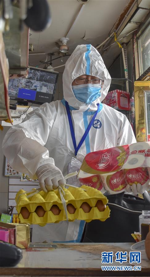 8月12日,烏魯木齊市天山區(qū)山西巷社區(qū)工作人員王志鷹幫居民代購(gòu)生活用品。新華社記者 高晗 攝