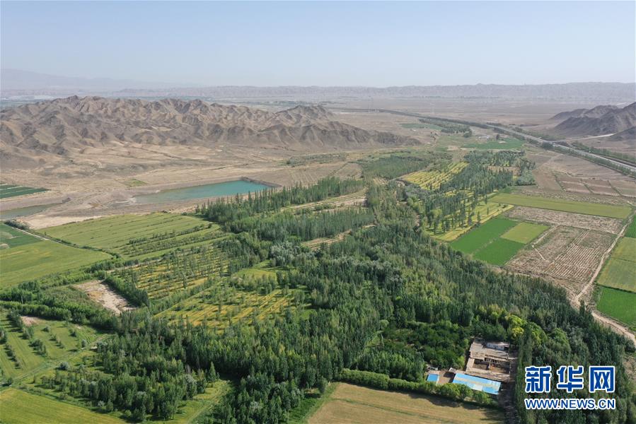 甘肅省金昌市永昌縣下四壩村村民徐文國的家庭林場(7月10日攝,無人機照片)。新華社記者 杜哲宇 攝