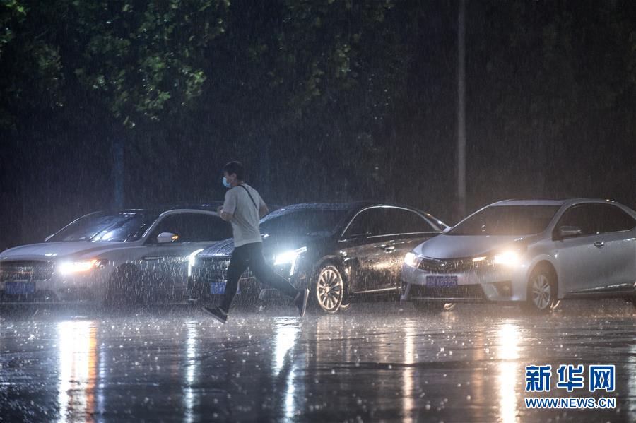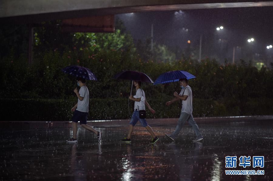 8月12日,在北京市朝陽(yáng)區(qū)一路段,行人冒雨出行。新華社記者 鞠煥宗 攝