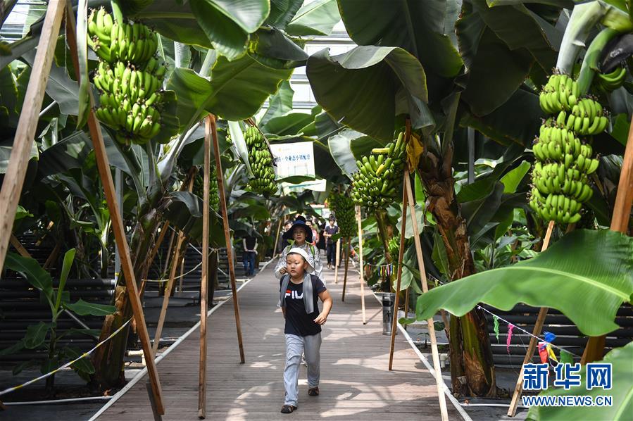在吉林省永吉縣萬昌鎮(zhèn)宇豐紅果木瓜產業(yè)園,游客在生態(tài)觀光采摘大棚內參觀游覽(8月12日攝)。新華社記者 許暢 攝