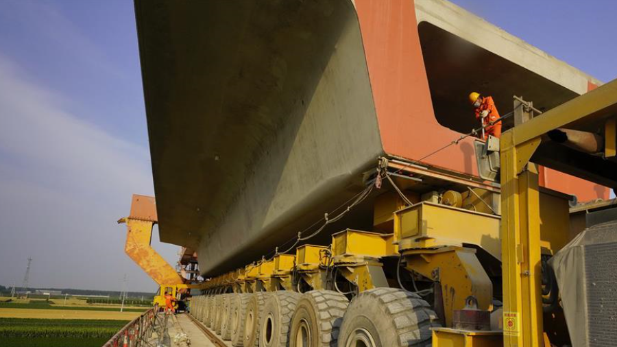 7月2日,工人在京唐城際鐵路河北省唐山市豐潤段建設工地施工。