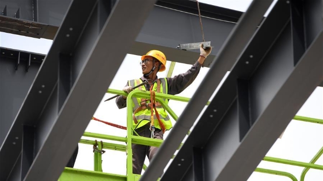 這是6月10日拍攝的已經(jīng)完成主體結(jié)構(gòu)和現(xiàn)場屋面施工的武漢琴臺美術(shù)館(無人機(jī)照片)。