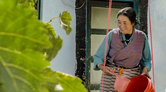 深秋時節(jié),四川省甘孜藏族自治州鄉(xiāng)城縣河谷地帶的民居像一顆顆白色珍珠點綴在色彩斑斕的田園中,形成一幅幅藏鄉(xiāng)田園畫卷。