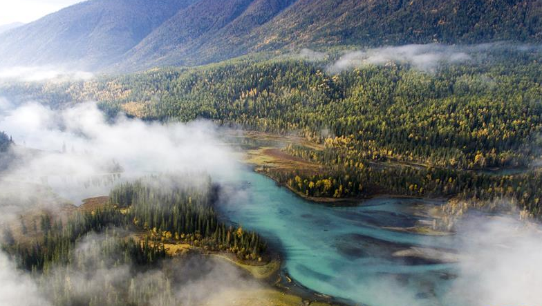 金秋時節(jié),位于新疆阿勒泰地區(qū)的喀納斯景區(qū)內(nèi)的林木與喀納斯湖相互映襯,美不勝收。