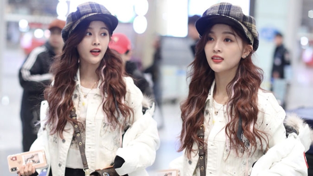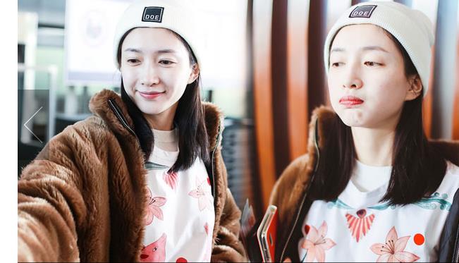 1月23日,北京,周冬雨現(xiàn)身機(jī)場(chǎng)。她用黑色連衣帽罩頭襯托巴掌臉,把下巴擱在行李車推桿上的雙手上呆萌可愛 。