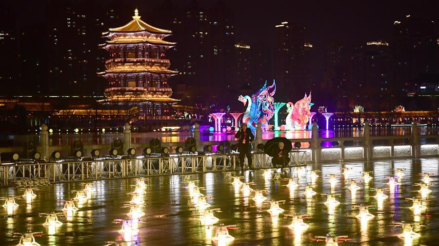 人機(jī)燈光秀亮相西安