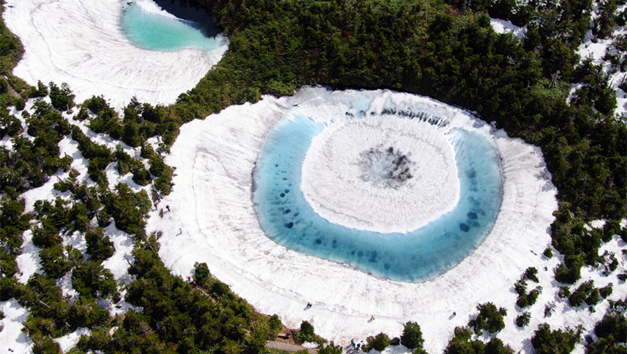 近日,長白山天池冰層逐漸消融,迎來“開冰季”。