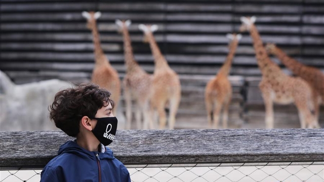 6月9日,一名男孩在法國巴黎動(dòng)物園內(nèi)參觀長頸鹿。受新冠疫情影響關(guān)閉了近3個(gè)月的巴黎動(dòng)物園于8日重新開放。