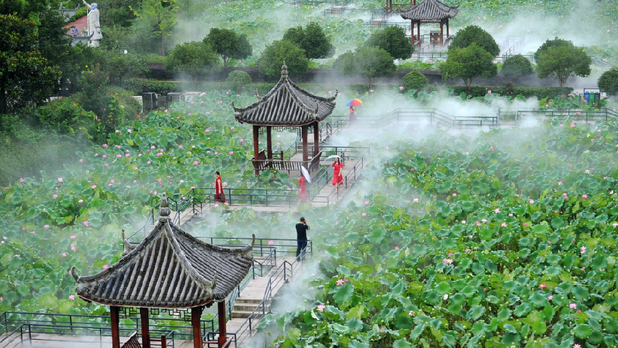 清晨6點,永康市舟山鎮(zhèn)端巖村端頭自然村,荷塘的薄霧慢慢升起,攝影師按下快門記錄鄉(xiāng)村之美。