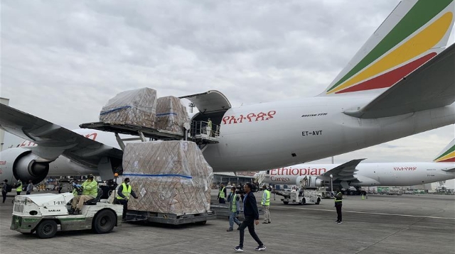 一批中國(guó)援助物資運(yùn)抵埃塞支持非洲54國(guó)抗疫