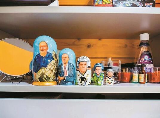 說起來,老烏沙科夫和中國也有點(diǎn)緣分,因?yàn)樗膬合眿D是一位來自中國杭州的女孩。烏沙科夫的家處于莫斯科郊外的富人區(qū),其實(shí)當(dāng)你踏入他家大門,就能立刻感覺踏入了一個(gè)冰球運(yùn)動(dòng)員的世界。墻角里擺放著的全是冰球桿,家里的各種裝飾也都是由冰球桿以及各種海報(bào)組成的。最有趣的是,套娃和伏特加酒瓶上,都特別定制著老人的照片?!斑@個(gè)很棒!”記者指著套娃說道,而老烏沙科夫聳聳肩,表示很淡定。